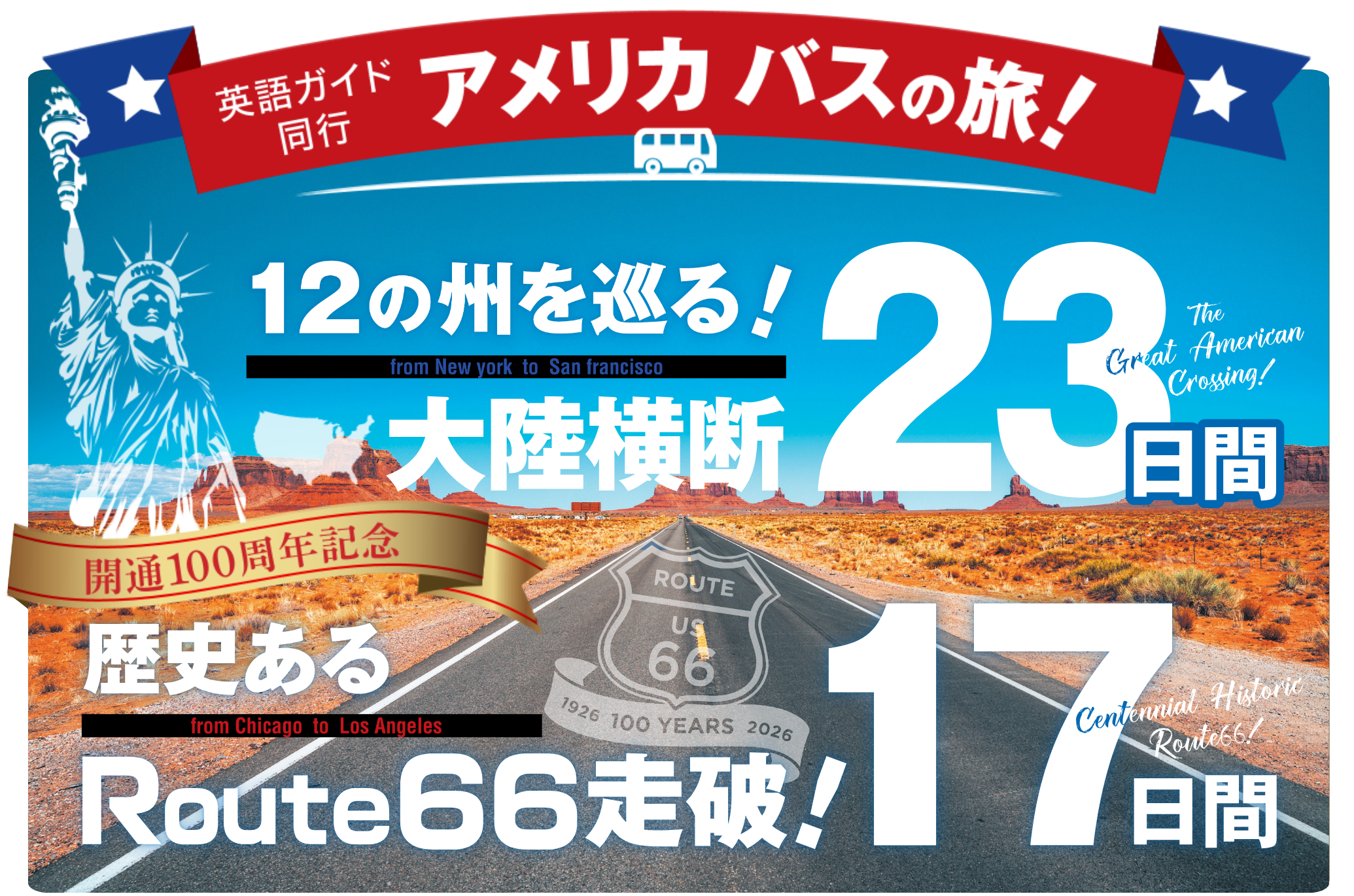 さらに、2026年は「開通100周年記念 歴史あるRoute66走破!17日間」の新コースも登場!